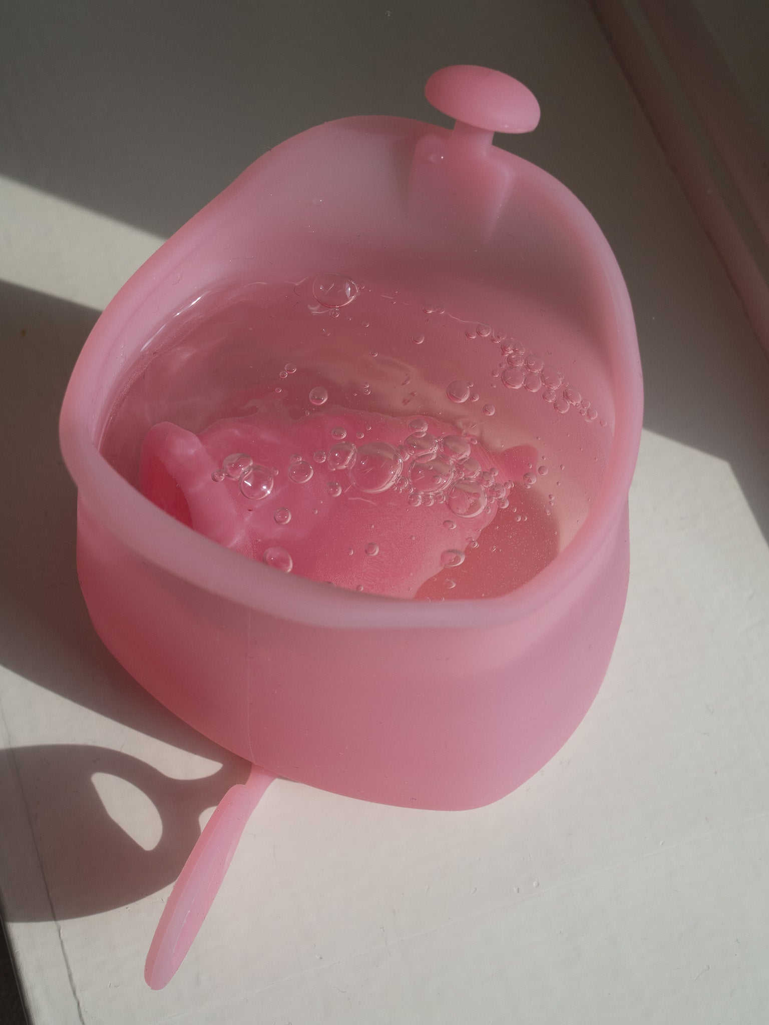 4. Rinse the cup with water. Also, use your fingers to gently clean the little holes in the cup. Repeat Step 2 to Step 4.